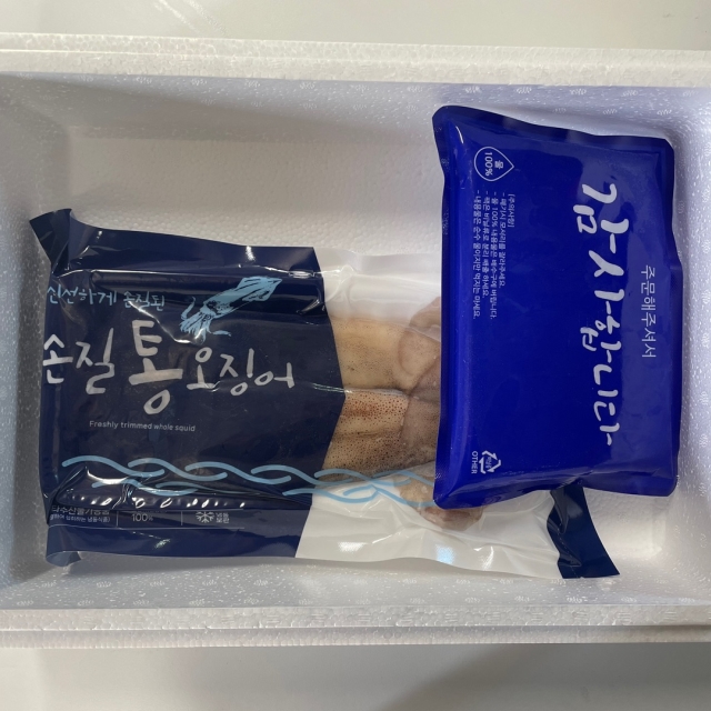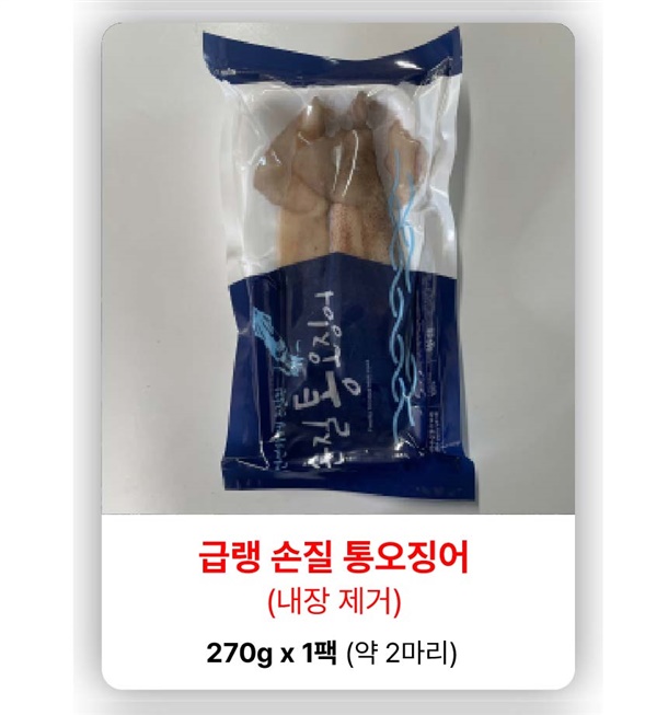 | 2. 포장단위별 내용물의 용량(중량), 수량, 크기 | 손질통오징어 2미 (260g. 320g, 500g) / 통찜오징어 500g |