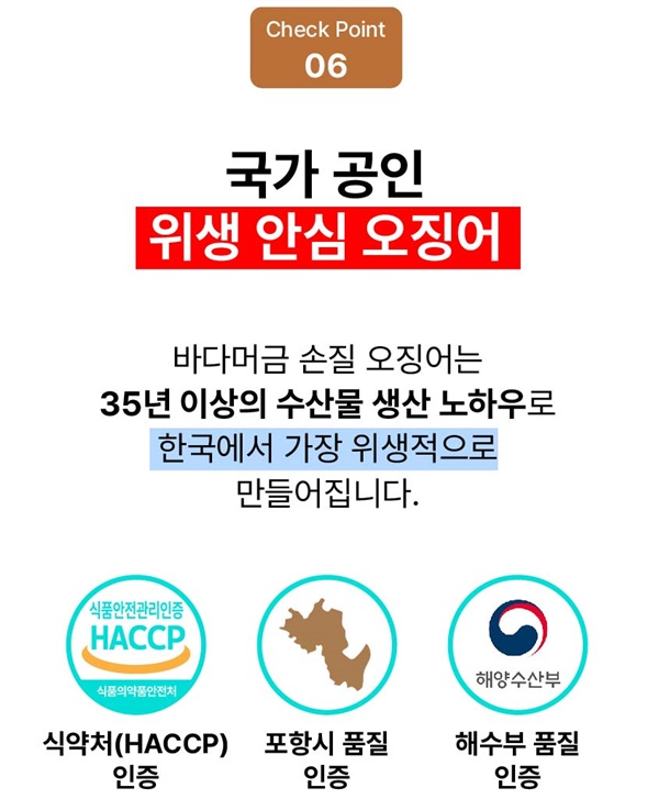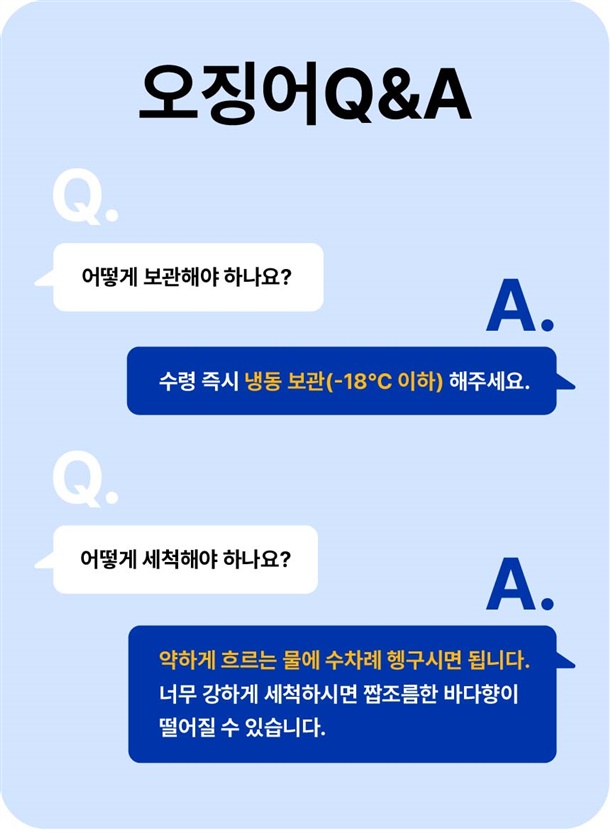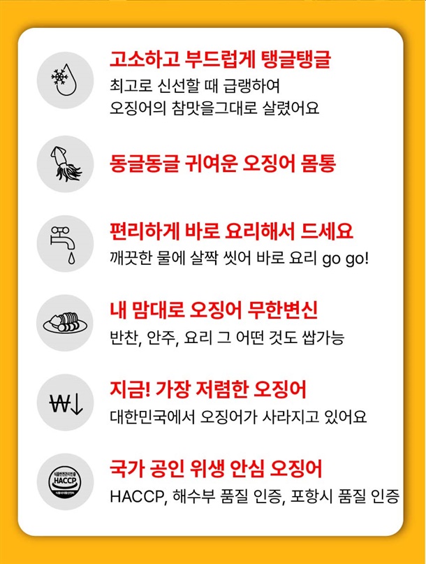 | 4. 「농수산물의 원산지 표시 등에 관한 법률」에 따른 원산지 | 오징어 (원양산) / 국내 가공 (포항 구룡포) |