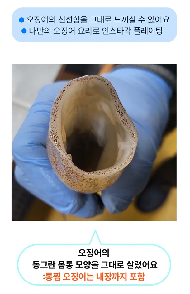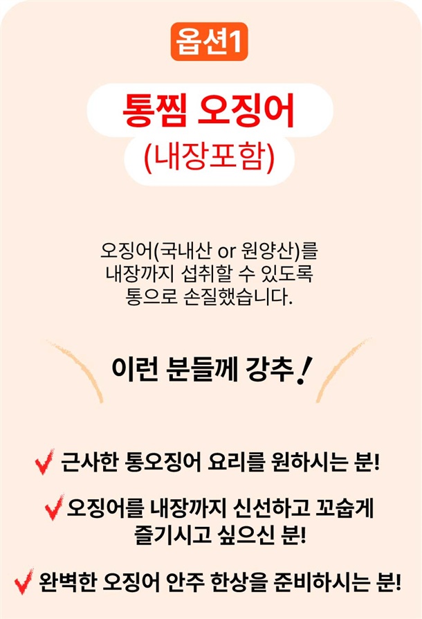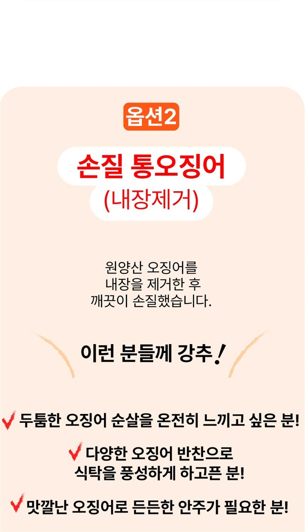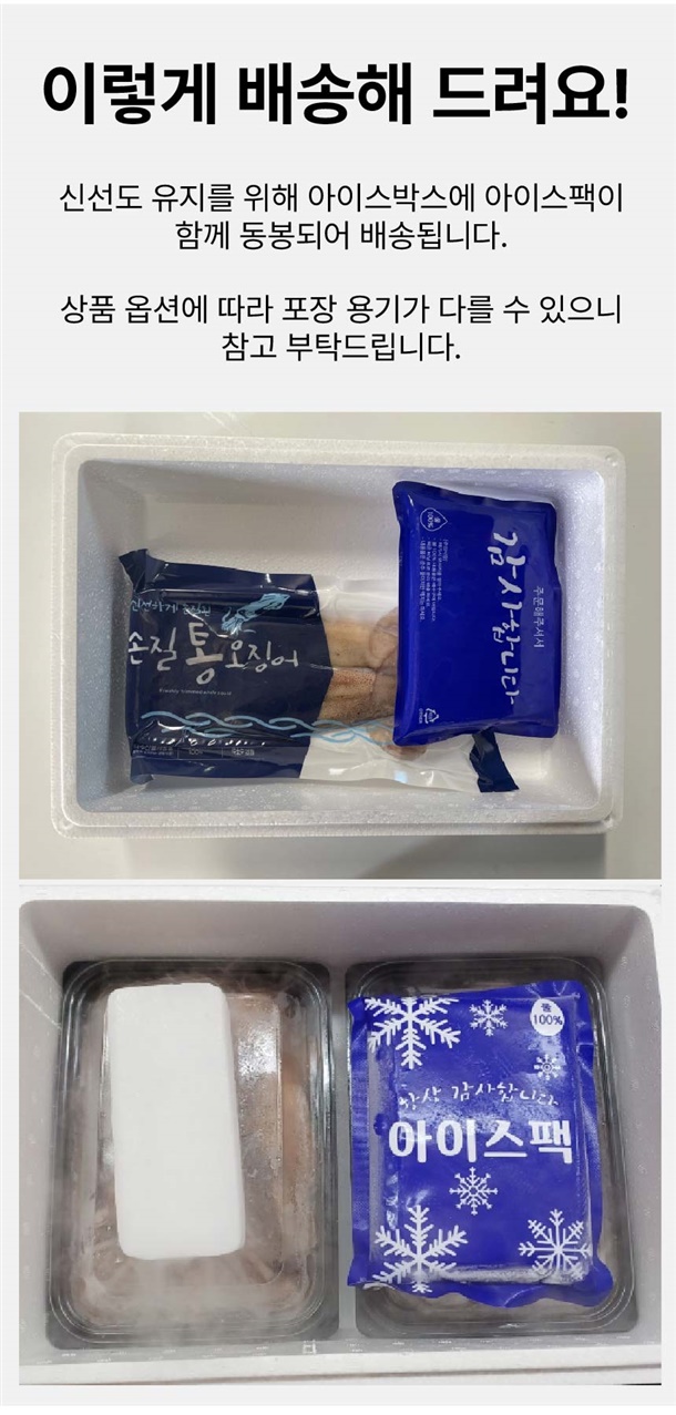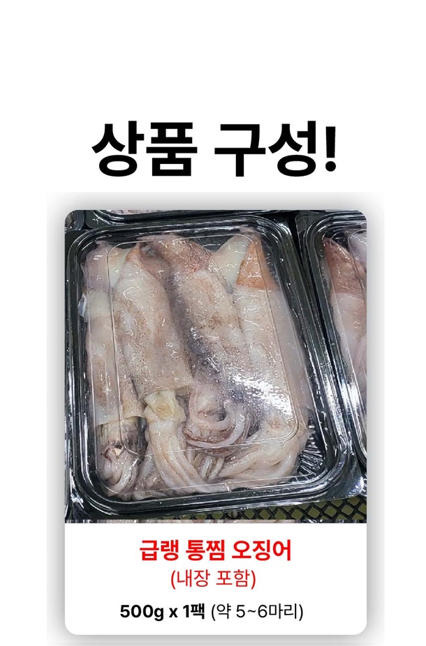 | 7. 상품구성 | 손질통오징어 2미 (260g. 320g, 500g) / 통찜오징어 500g |
