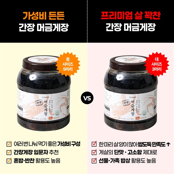 | 1-5. 포장단위별 내용물의 용량(중량), 수량 | 3kg 3미, 3kg 5미 (간장 무게 포함) |
