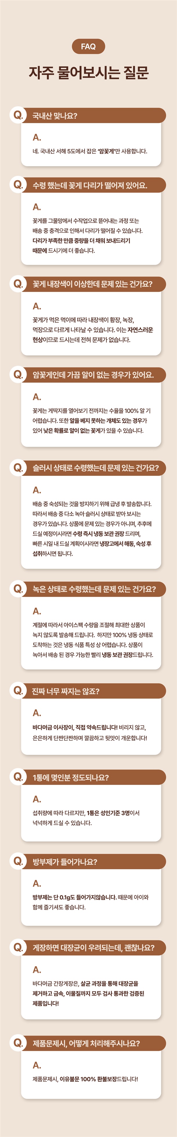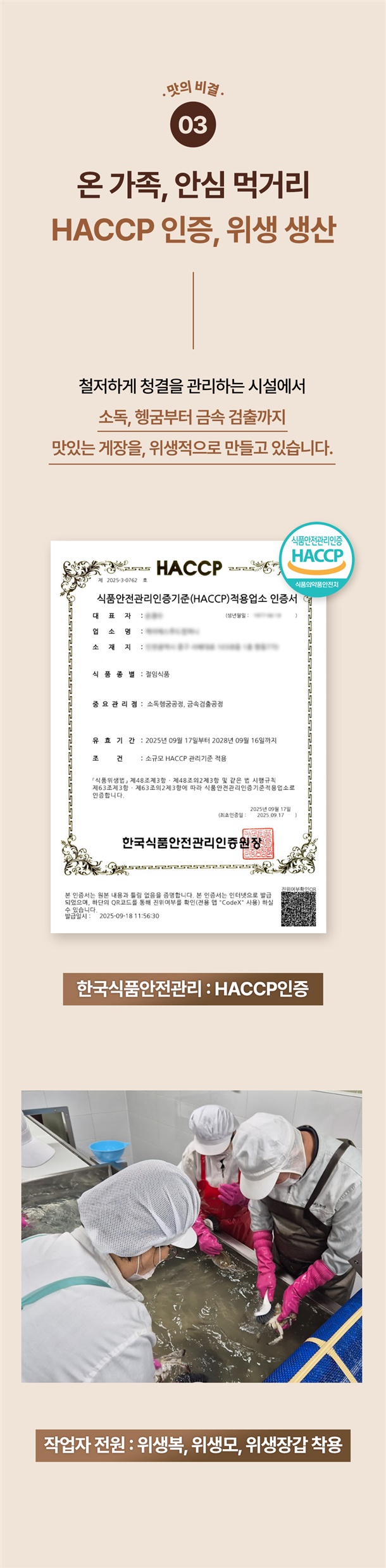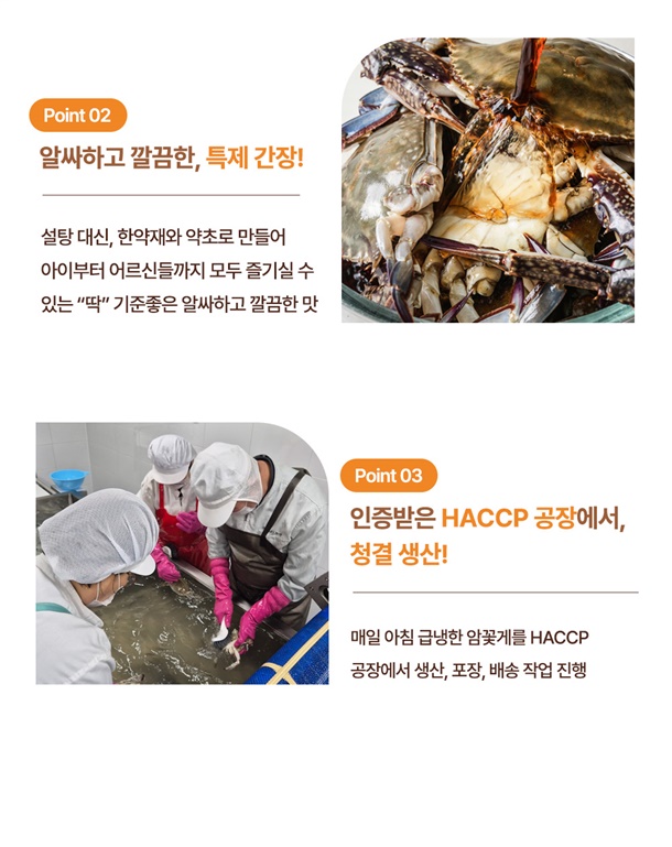 | 1-9. 소비자 안전을 위한 주의사항 (「식품 등의 표시ㆍ광고에 관한 법률 시행규칙」 제5조 및 [별표 2]에 따른 표시사항을 말함) | 꽃게, 새우 등 갑각류 알레르기가 있으신 분은 섭취 주의 |